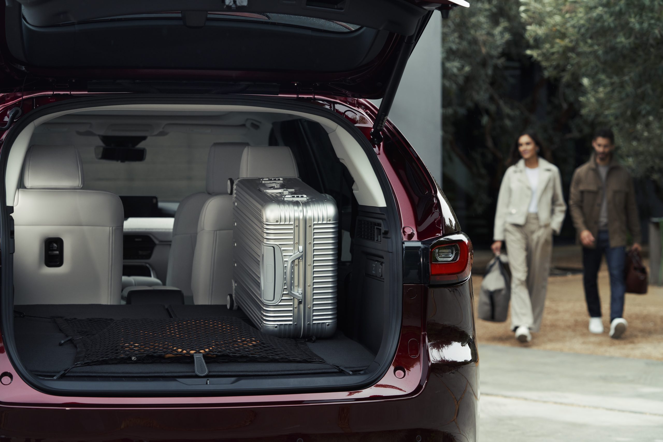 For maximum cargo capacity, the two-person third row is the best option when folded flat. This configuration accommodates over 75 cubic feet of cargo. Whether you are hauling sports gear, your retail therapy parcels, or luggage for your road trip, it all fits perfectly. The cargo area comes with storage boxes and underfloor storage as well.