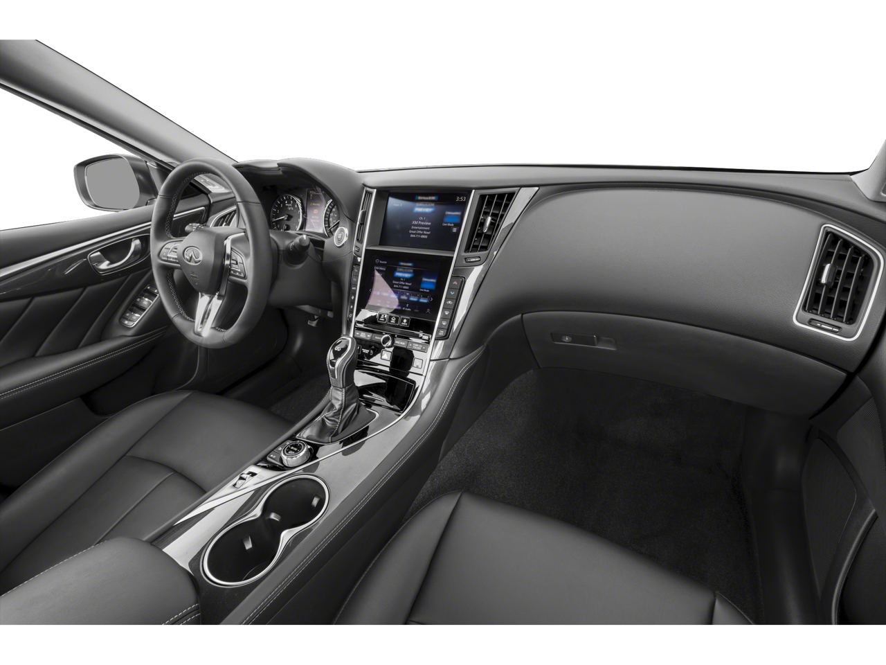 Step inside the cabin and be enveloped in the refined elegance of the INFINITI Q50 LUXE. Indulge in the comfort of the heated leather-appointed seating surfaces, the convenience of the dual-zone automatic climate control, and the seamless connectivity of the INFINITI InTouch Dual HD Display System. Enjoy the convenience of the power-adjustable driver's seat with memory function, the Bose premium audio system, and the panoramic moonroof that floods the interior with natural light.