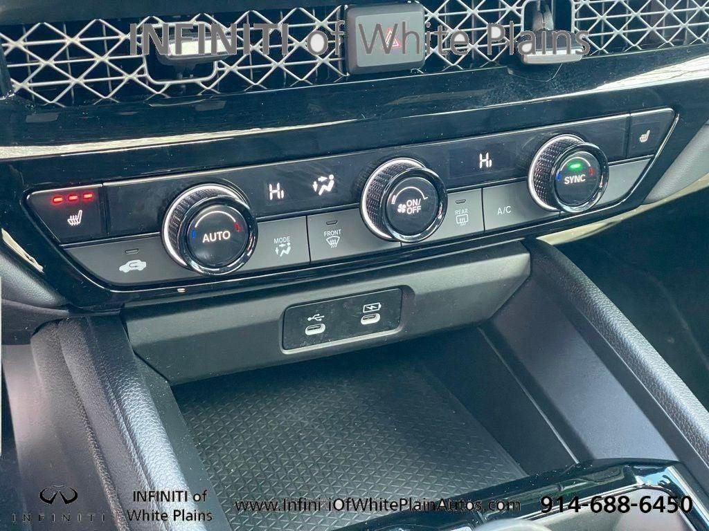 The Honda Accord Hybrid Sport-L's interior is a sanctuary of comfort and convenience. Sink into the heated, leather-trimmed front seats and enjoy the seamless integration of advanced features, including a premium audio system, dual-zone automatic climate control, and a power moonroof that floods the cabin with natural light.