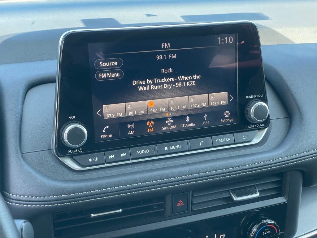 - Radio: AM/FM NissanConnect -inc: 6 speakers plus 2 tweeters, Apple CarPlay, Android Auto, 8" color touch screen display, Bluetooth®, 2 front USB type-C, Wi-Fi hotspot and NissanConnect Services powered by SiriusXM